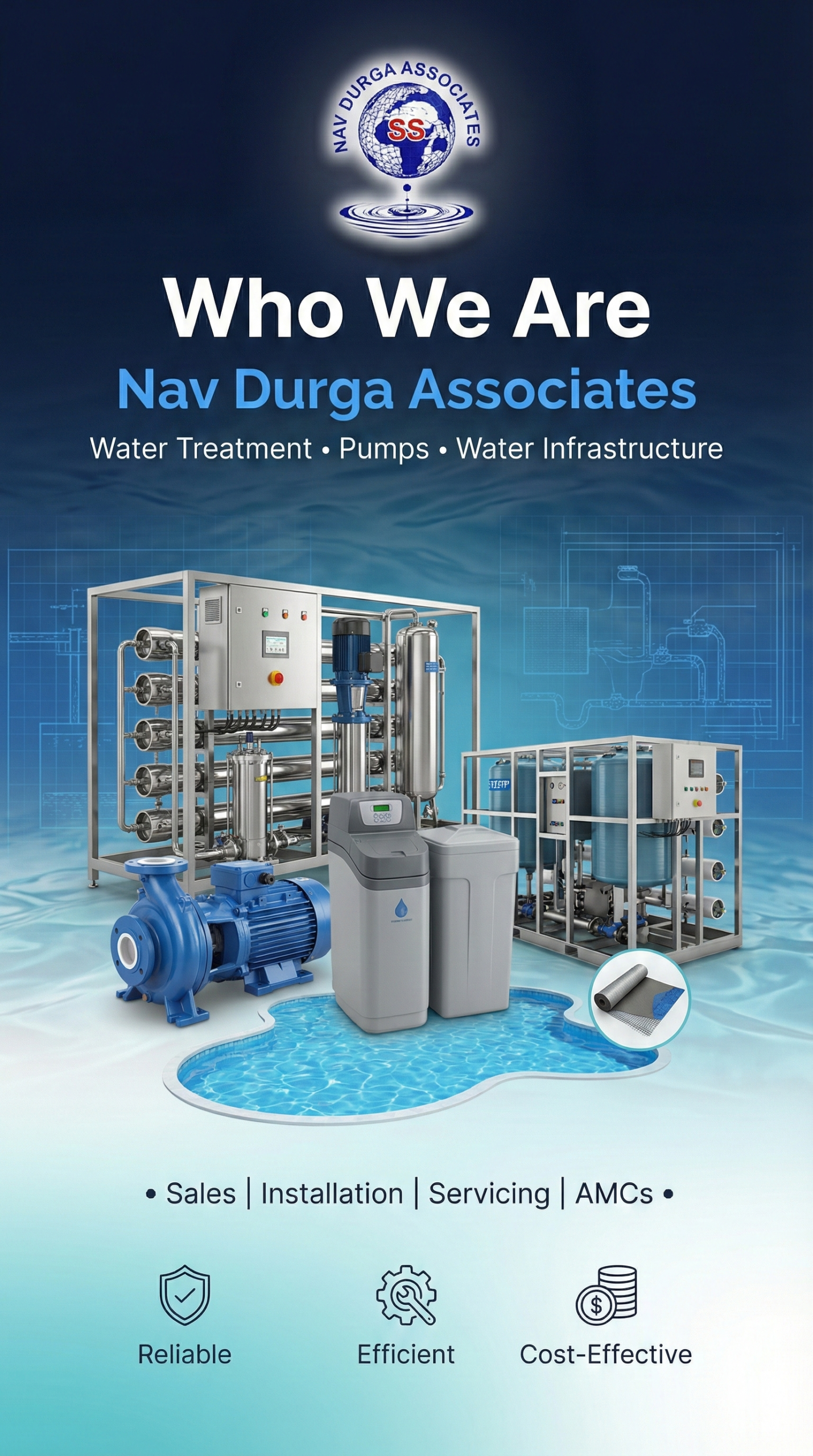 Nav Durga Associates is a professionally managed company specializing in water treatment plants, pump systems, and end-to-end water infrastructure solutions. With years of hands-on industry experience, we’ve earned the trust of residential, commercial, industrial, and hospitality clients by delivering systems that work reliably, run efficiently, and stay cost-effective over the long term.